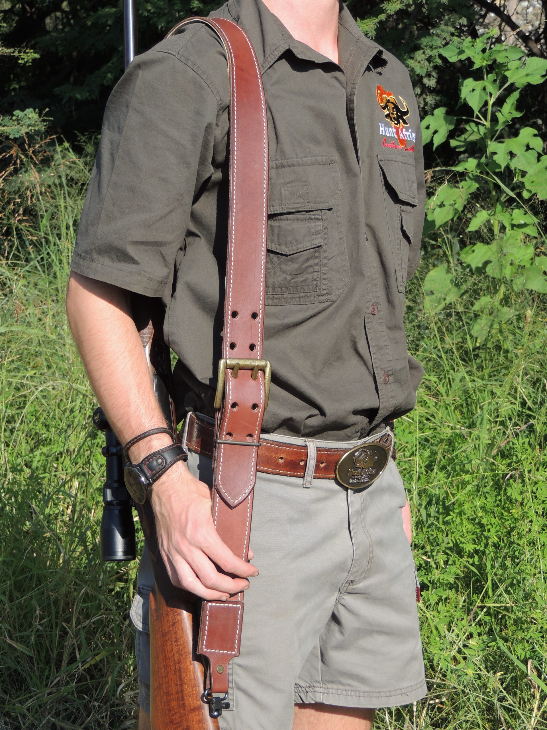 Handmade2Prong rifle sling made from top-quality leather. Adjustable straps with a 2 prong buckle to be adjusted to your preference.
