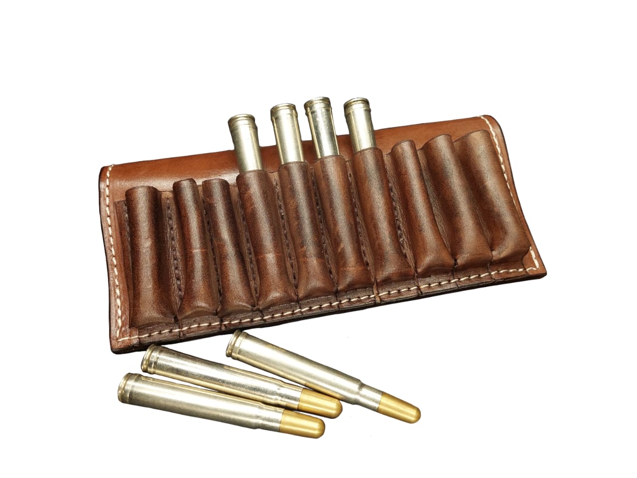 The open-cartridge leather pouch gives you the capacity to carry 10 rounds of ammunition and is suitable for all medium calibers.