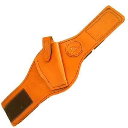 The ankle leather holster is handmade of the best quality veg-tanned leather. This holster is ideal for pocket guns, and small as well Medium frame handguns. It is made to custom-fit your weapon. This holster attaches to your leg via Velcro straps.