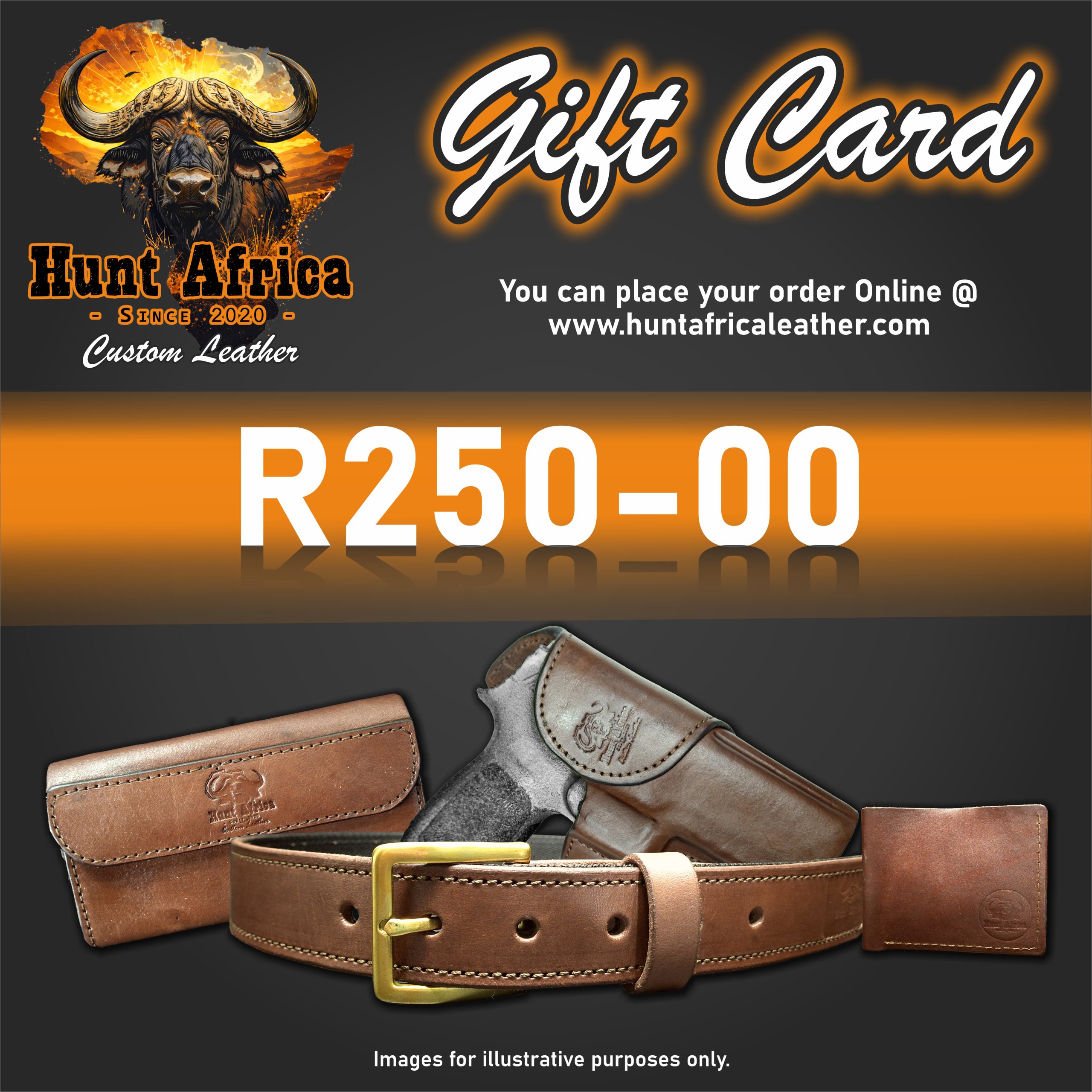 The perfect gift for a leather lover.An R250 Gift Card to purchase anything on our website, WhatsApp, or Email. Please note this voucher does not include free shipping.